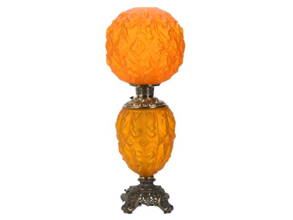 An American Brilliant Cut Glass two-light, electrified table lamp by Pairpoint in the Estelle pattern, boasting a mushroom shade (but with one prism missing), should go to a determined bidder for $600-$1,200; while a Gone With the Wind table lamp in a rare apricot satin color and in the Imperial pattern by Consolidated, is expected to illuminate the room for $500-$1,000.