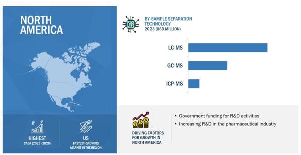 The mass spectrometry market covers five key geographies—North America, Europe, Asia Pacific, Latin America, and the Middle East and Africa. The market in the North America region is expected to hold significant market share for mass spectrometry in 2022. The growth of the mass spectrometry market in this region can be attributed to the increasing investments in pharmaceutical R&D and government funding for R&D activities.