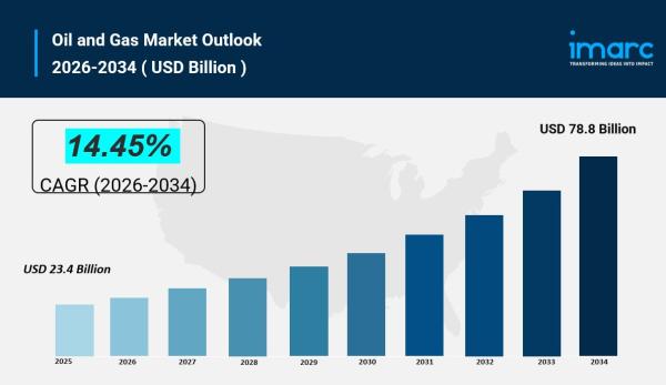 The global Oil and Gas Market was valued at USD 23.4 Billion in 2025 and is forecast to reach USD 78.8 Billion by 2034, growing at a CAGR of 14.45% during 2026-2034. This growth is driven by increasing global energy demand, industrialization, advanced extraction technologies, exploration investments, geopolitical influences, cleaner fuel shifts, and economic recovery supporting demand in the natural gas and LNG sectors.