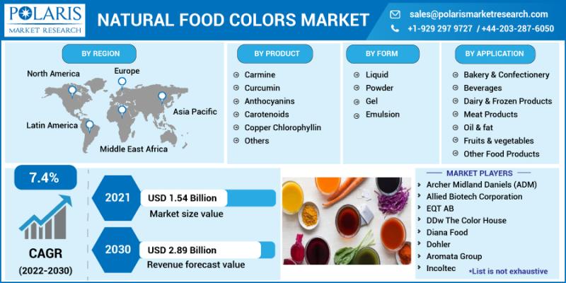“According to the research report published by Polaris Market Research, the Global Natural Food Colors Market Size Is Expected To Reach USD 2.89 Billion By 2030, at a CAGR of 7.4% during the forecast period.”