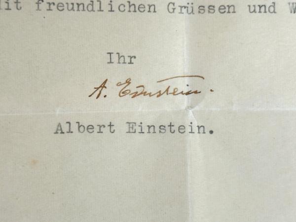 The two-page typed letter signed by Einstein was dated 1950 on the physicist’s stamped letterhead (Princeton, N.J.), written in German and addressed to the well-known medalist and portraitist Prof. Artur Immanuel Lowental of Vienna. It regarded Mr. Lowental’s not being paid for a commissioned bust/medal of Einstein, who was sympathetic in the letter.