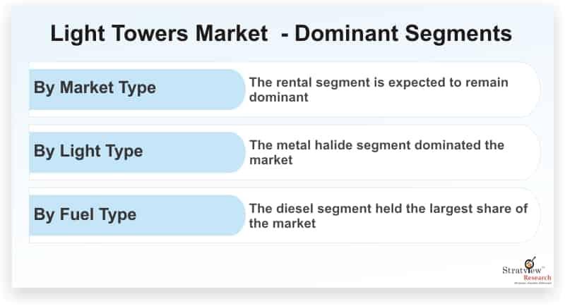 Based on the light type, the light towers market is segmented as metal halide and LED. The metal halide segment dominated the market in 2019, owing to increased demand from oil & gas and mining industries. On the other hand, the LED segment is expected to witness a higher growth, during the forecast period, owing to the increasing demand for energy efficient lighting systems.
