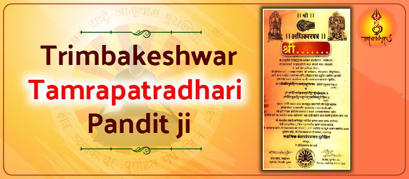 Tamrpatr means the proof to perform Pooja in Trimbakeshwar. Only they considered authentic Pandit who has Tamrpatr on copper plate. Tamrpatr is given by Nanasaheb Peshwa to the local Pandit of Trimbakehwar and since that event, the ancient copper plate is preserved for many years.