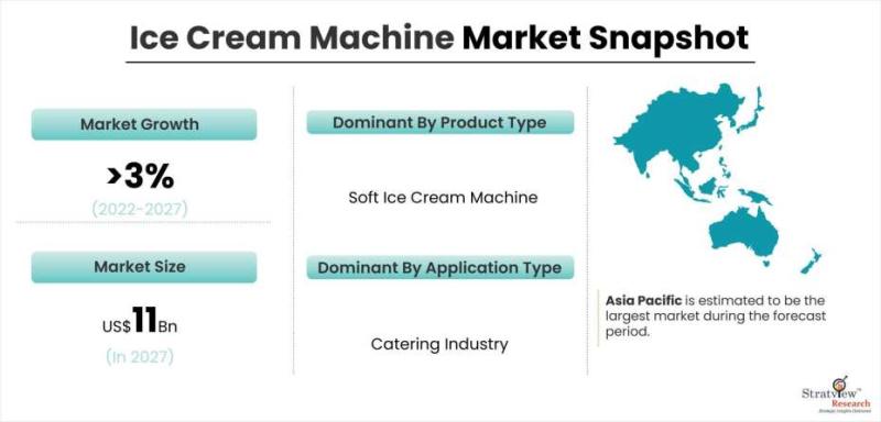 The report suggests that the overall Ice Cream Machine Market is estimated to grow at a healthy CAGR of more than 3% during the forecast period to reach a value of US$ 11 Bn in 2027.